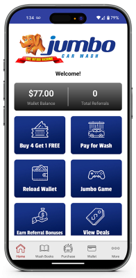 With our new Jumbo app going to the car wash has never been easier. Download our user-friendly app for quick and convenient services that you can manage, eliminate any guesswork from your next car wash and make it an enjoyable experience.